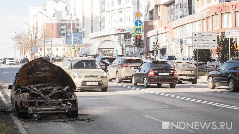 В центре Екатеринбурга еще в прошлую пятницу, 13 октября, сгорела машина – ЧП случилось поздно вечером неподалеку от перекрестка улиц Куйбышева и Шейнкмана. С того момента «одиннадцатая» стоит на том же месте, где ее оставил владелец, – горожане даже вечером в четверг, то есть спустя практически неделю, сообщали, что этот памятник автопожару мешает дорожному движению.