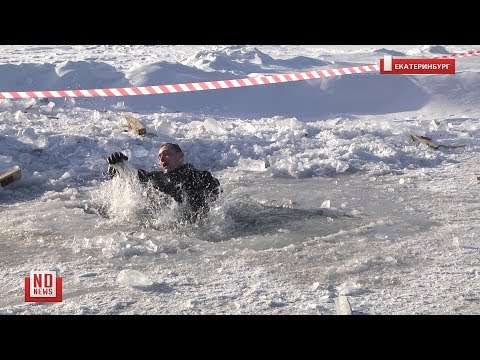 Для того чтобы продемонстрировать правильный алгоритм действий при вызволении из полыньи, организаторы вырубили прорубь на Шарташе. Добровольцу в гидрокостюме пришлось несколько раз провалиться под лед.