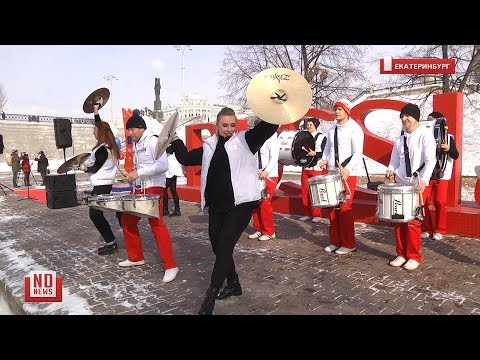 В Екатеринбурге сегодня прошла праздничная акция, посвященная отсчету 100 дней до начала Чемпионата мира по футболу в России. На заснеженной Плотинке собрались студенты и школьники, которые приняли участие в массовой зарядке.