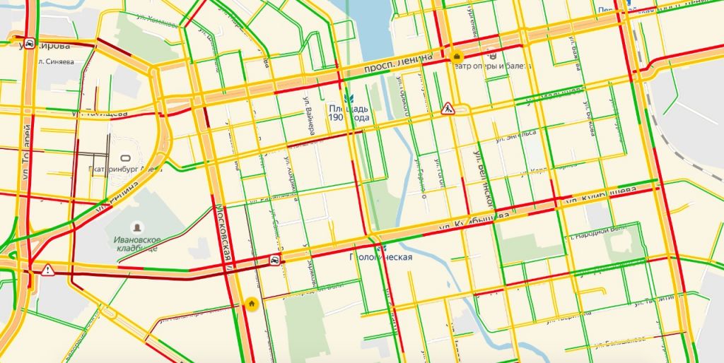 По данным сервиса «Яндекс.Пробки», затруднения на дорогах оцениваются в 7 баллов.
