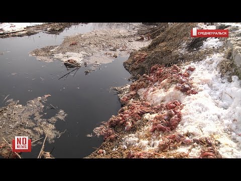 Жители Верхней Пышмы рассказали, что птицефабрика «Среднеуральская» сбрасывает в местный водоем отходы производства, куриные потроха и кровь. «В Верхней Пышме жуткий смрад, дышать нам просто невозможно!", – описали местные. «Новый День» убедился – предприятие складирует производственные отходы недалеко от собственной территории. Примерно в 50 метрах от фабрики находятся отвалы сухого мусора, а за ними небольшой пруд, заваленный куриными потрохами. По всем признакам, биологические отходы сюда завозят регулярно – рядом с протухшими тушками навалена свежая требуха, на дороге многочисленные следы машин. Вонь от свалки распространяется далеко за пределы озерца.