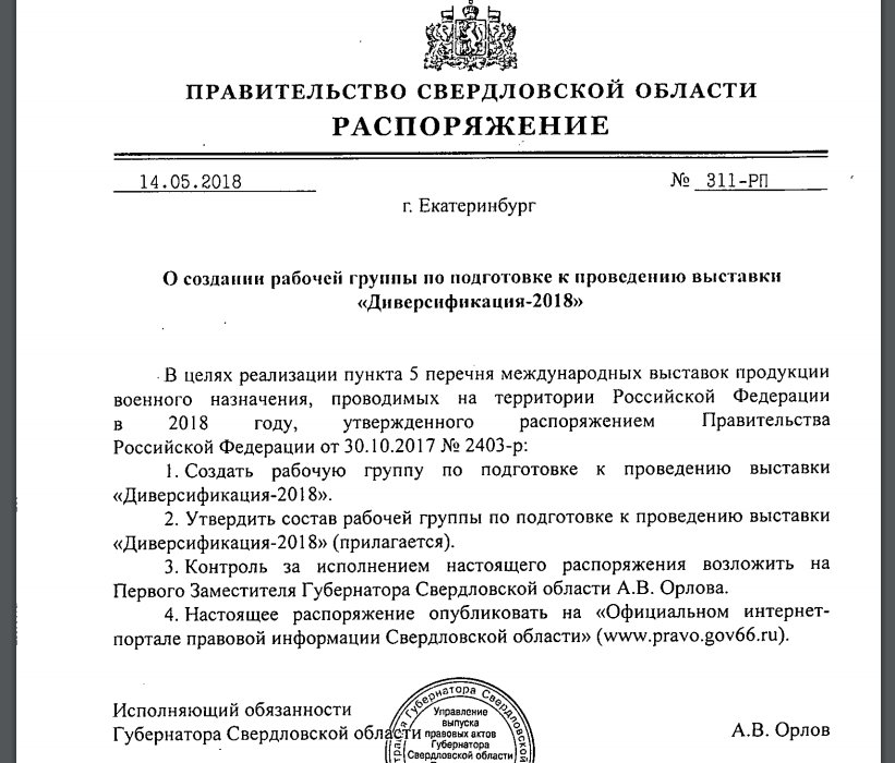 В Свердловской области создали рабочую группу по подготовке к проведению выставки «Диверсификация-2018». Соответствующее распоряжение правительства было опубликовано сегодня. А вчера стало известно, что выставки не будет.