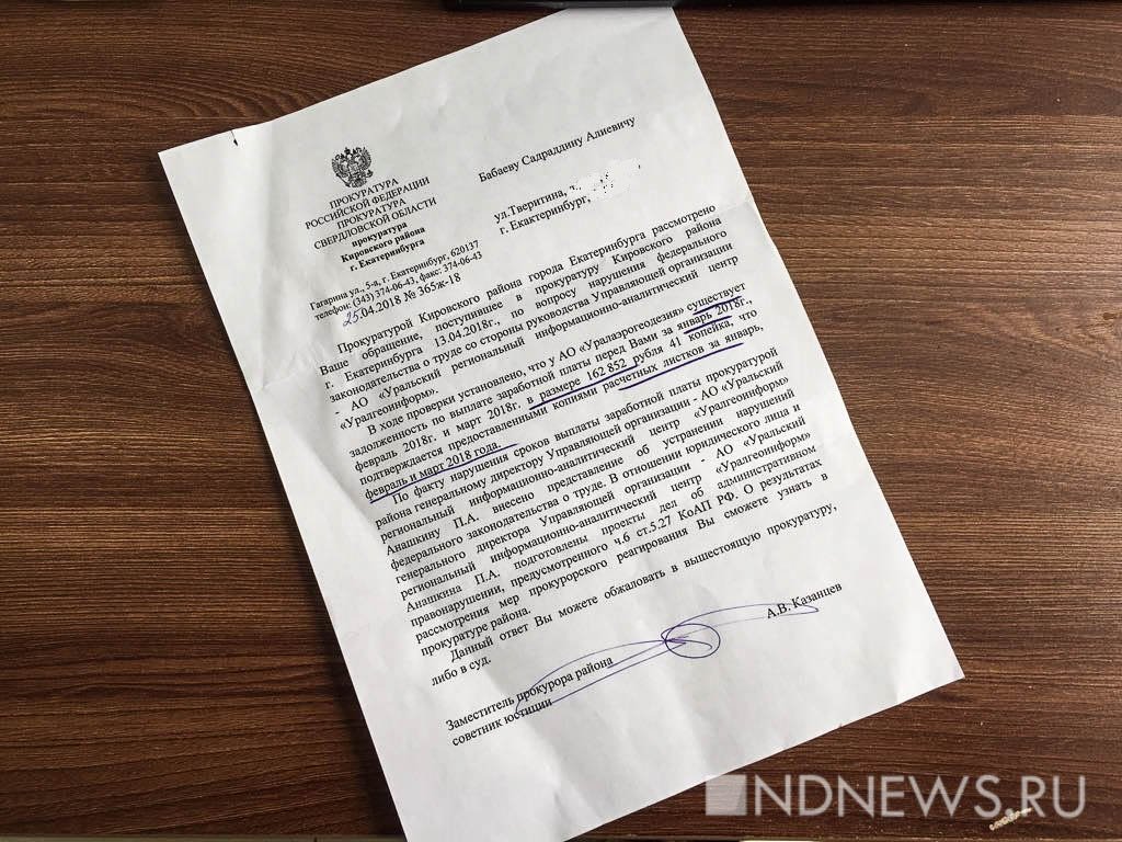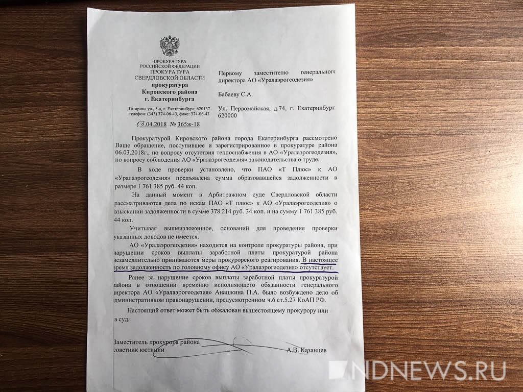Как сообщили «Новому Дню» в пресс-службе СУ СК РФ по Свердловской области уже после выхода нашего материала, следственным отделом по Кировскому району Екатеринбурга СК России по Свердловской области по появившемуся сегодня сообщению СМИ о невыплате заработной платы сотрудникам АО «Уралаэрогеодезия» организовано проведение доследственной проверки. В целях дачи сложившейся ситуации объективной и принципиальной правовой оценки будет проведен комплекс проверочных мероприятий. По итогам доследственной проверки будет принято процессуальное решение.