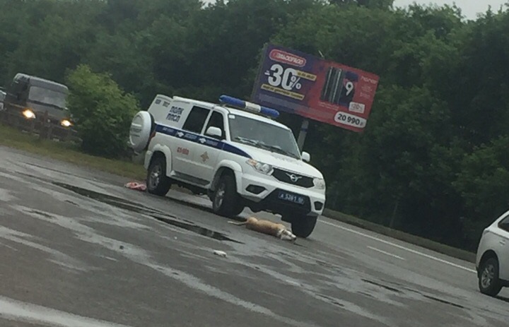 В распоряжении редакции РИА «Новый День» оказалось видео, снятое очевидцами. На записи – мужчина, лежащий на земле, вокруг которого бегает собака бойцовской породы со снятым намордником. Рядом стоит машина полицейских, стражи порядка, судя по всему, хотят выйти из нее и помочь мужчине, но не могут – пес бегает вокруг автомобиля, отдирает брызговики, бросается на колеса. Один из полицейских достает оружие и несколько раз стреляет. Пес убегает, но от ран умирает в десятке метров от полицейского уазика.