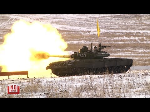 «Экипажи Т-72Б3 состязаются в ведении огня из орудия танка и крупнокалиберного пулемета по появляющимся и движущимся мишеням на дистанции от 900 до 2200 метров, имитирующим бронетехнику и низколетящие вертолеты. Механики-водители осваивают технику скоростного преодоления препятствия в виде эскарпов, траншей, рвов, колейных мостов, косогоров и минно-взрывных заграждений», – сообщили в пресс-службе ЦВО.