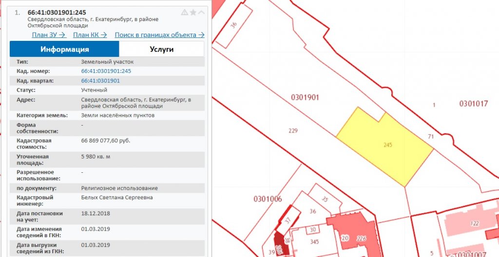 Фонд имущества Свердловской области объявил аукцион на право заключения аренды земельного участка религиозного назначения возле Октябрьской площади, где планируется построить собор святой Екатерины.