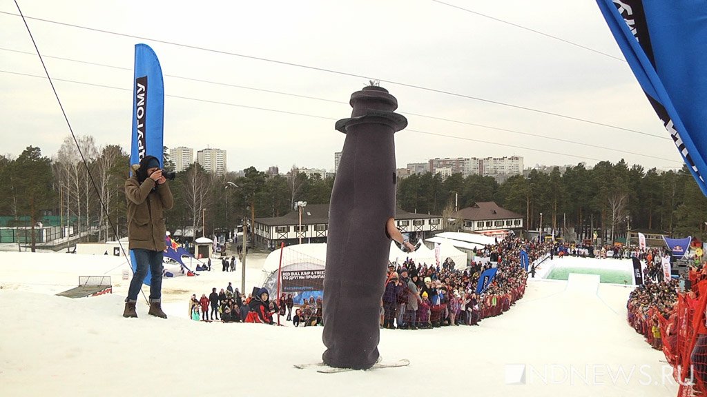 На горе Уктус сегодня прошло аква-экстрим-шоу Red Bull Jump & Freeze («Прыгни и замерзни»). Участникам необходимо было скатиться со склона и вылететь с трамплина в бассейн, наполненный холодной водой. При этом экстремалы должны были делать трюки в воздухе в карнавальных костюмах.