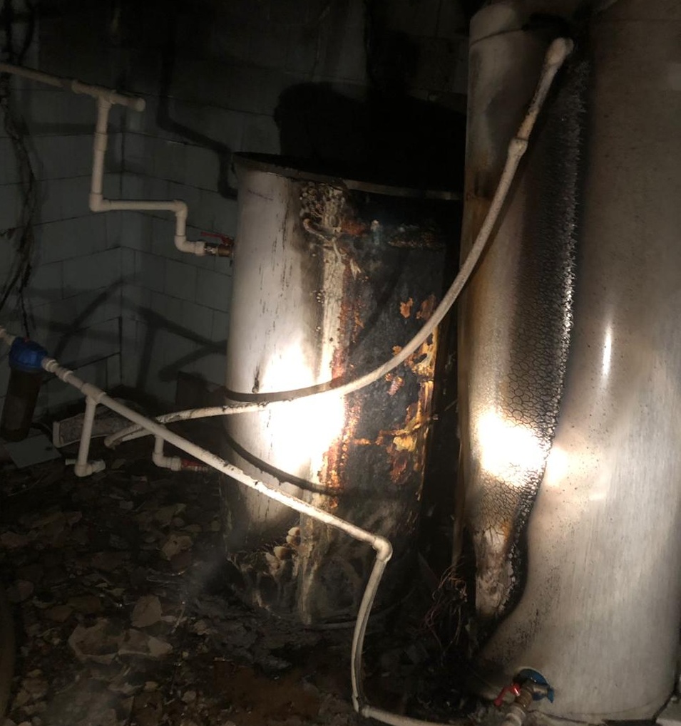 Площадь пожара составила 2 кв. м. В течение 15 минут пожарные справились с огнем. В тушении были задействованы 4 единицы пожарно-спасательной техники, 10 человек. Предварительная причина пожара – короткое замыкание электропроводки одного из бойлеров.