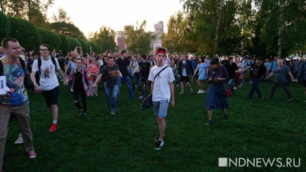 Акция началась мирно. Люди собрались возле ограждения, а после часть толпы организовалась в хоровод. Они шли вокруг забора и пели песни.