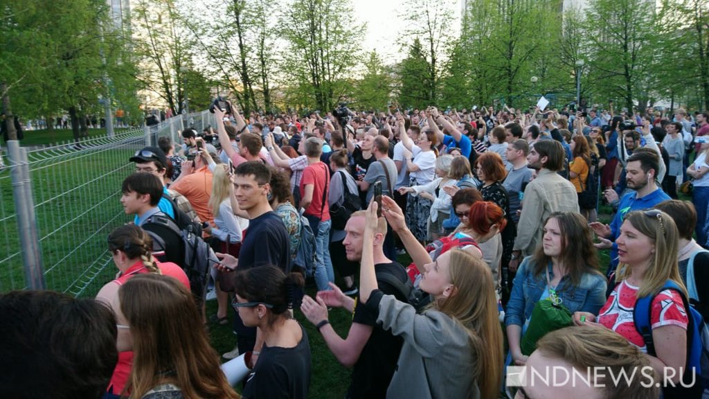 Спустя некоторое время толпа положила ограждение в одном месте и прорвалась на закрытую территорию в сквере. Охрана окружила загадочную палатку, поставленную в центре площадки, а люди начали ходить вокруг нее и скандировать «Мэра сюда!». Что находится в палатке, неизвестно.