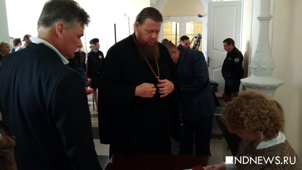09:38 Пришел на встречу в мэрию протоирей Максим Миняйло. Он выступал от имени епархии по вопросу строительства храма святой Екатерины с самого начала протестов.