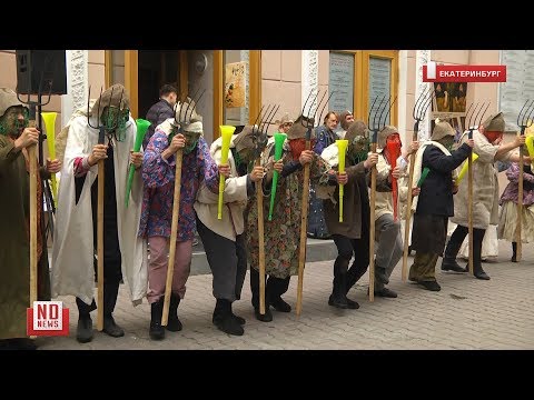 Центр Екатеринбурга сегодня переместился в прошлое на два века. На главном проспекте города Александр Пушкин разъезжал на коне, «народ безмолвствовал» и махал вилами. В честь 220-летия поэта рубили коровьи головы, пели арии с балконов и устраивали поэт-баттлы.