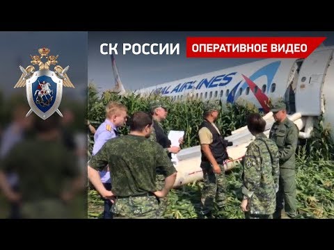В ролике видно, что судно по-прежнему лежит посреди кукурузного поля, на носу – вмятины и повреждения. Следователи осматривают самолет и снаружи, и внутри. Также можно увидеть, что следователи проводят опрос членов экипажа.