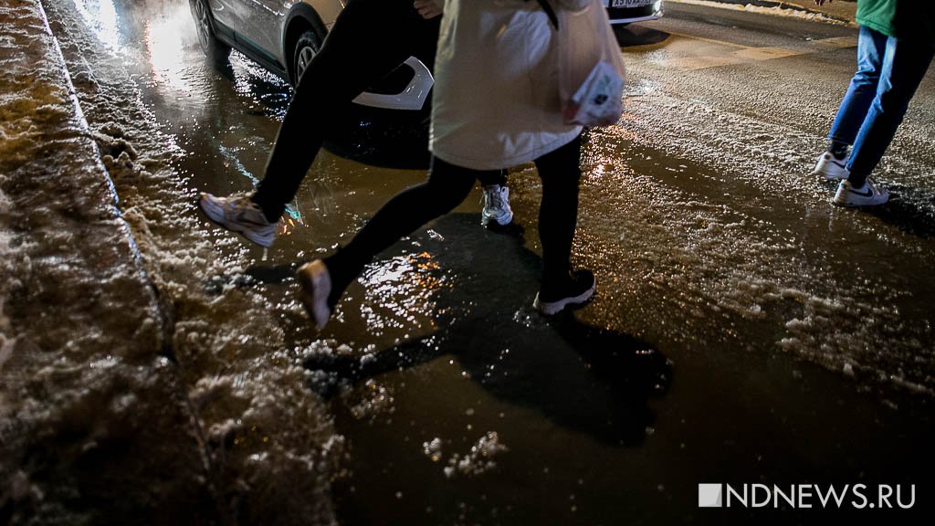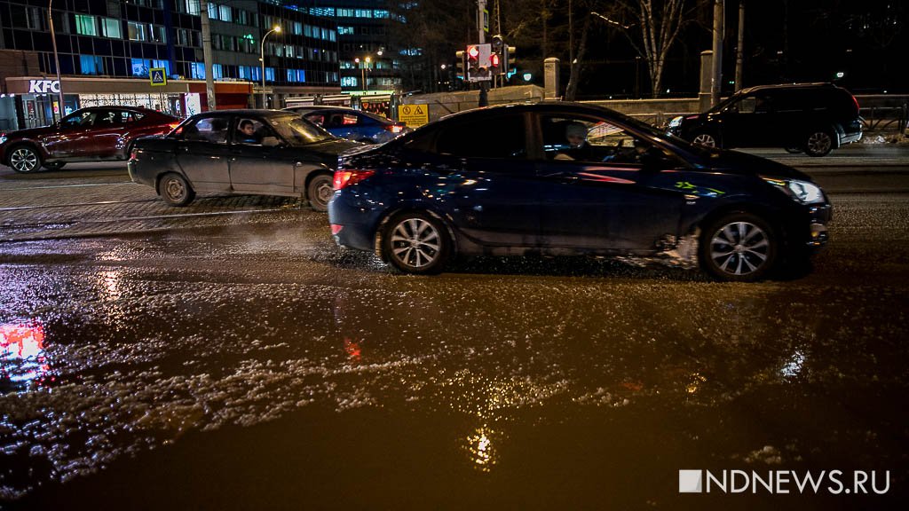 По словам очевидцев, холодная вода течет по улице Радищева со стороны Вайнера. Перекресток находится в низине, вода с него никуда не уходит.