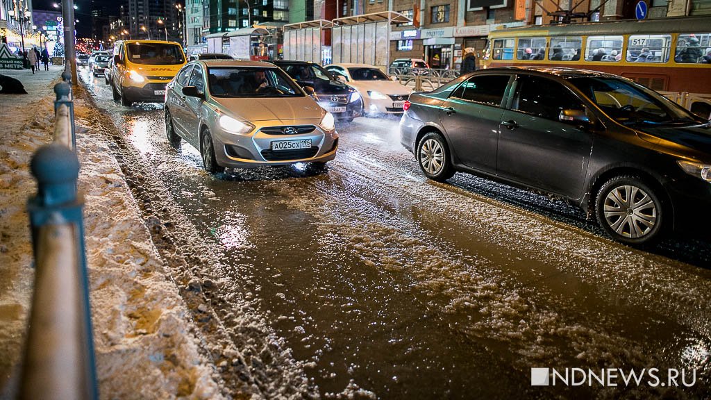 Потоп в центре Екатеринбурга – заливает перекресток улиц Радищева и 8 Марта.
