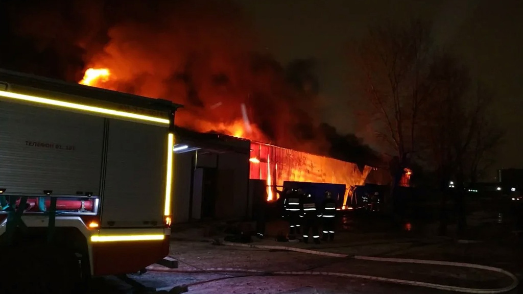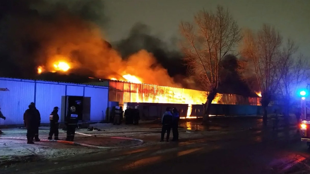 Почти всю ночь продолжалось тушение крупного пожара в складском здании, расположенном на территории Верх-Исетского рынка на улице Халтурина в Екатеринбурге.