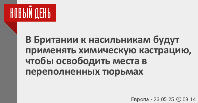 Британское правительство планирует начать использовать лекарственные препараты для подавления полового влечения у лиц, совершивших сексуальные преступления, в рамках пакета мер по снижению риска повторного совершения преступлений и облегчению нагрузки на пенитенциарную систему, в которой остается все меньше мест.