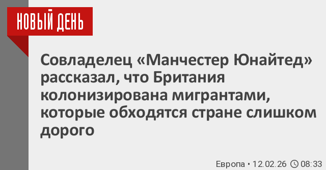 Совладелец «Манчестер Юнайтед» рассказал, что Британия колонизирована мигрантами, которые обходятся стране слишком дорого