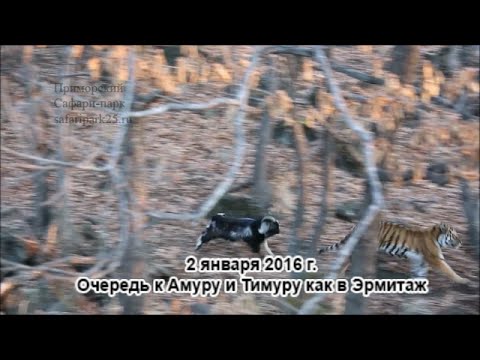 Кроме того, каждое утро козел и тигр идут проверять елку, которую поставили в вольере 1 января. Там для козла приготовлена капуста, на ветвях висят яблоки. «Амур также играет и с яблоками, и с капустой – он здоровый молодой тигр. Также каждое утро мы вешаем на дерево кусок мяса», – отметил Мезенцев. По словам сотрудников парка, очередь к Амуру и Тимуру в новогодние дни – «как в Эрмитаж».
