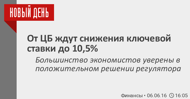 Старший аналитик корпорации «Уралсиб» Ирина Лебедева полагает, что ЦБ на заседании 10 июня должен снизить ключевую ставку до 10,5%. В противном случае регулятор рискует упустить благоприятный момент, связанный с ослаблением доллара и низкой вероятностью повышения ставки ФРС, предупредила аналитик, сообщает finaz.ru.