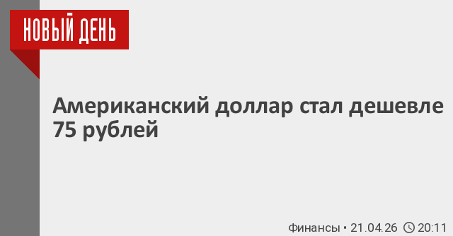 Москва, Апрель 21 (Новый День, Анастасия Смирнова) –Центробанк РФ понизил официальные курсы основных иностранных валют по отношению к российскому рублю на завтра, 22 апреля. Как следует из данных регулятора, американский доллар стал дешевле 75 рублей, а евро опустился ниже 88 рублей.
