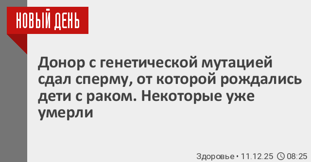 Донор спермы с редкой генетической мутацией, связанной с повышенным риском развития рака, стал отцом по меньшей мере 197 детей в Европе. Некоторые некоторые из которых уже умерли от этого заболевания, пишут СМИ.