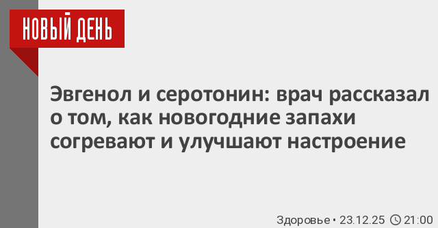 «Люди выработали праздничную традицию в течение столетий, с тех пор как в Европу стали завозить пряности и цитрусы. К рождественским ароматам, которые много лет были частью новогоднего стола, а последние 30 лет вошли в гурманский жанр парфюмерии, относят печенье и карамель, цитрусы, пряности», – рассказал кандидат медицинских наук, доцент кафедры госпитальной терапии имени академика П.Е. Лукомского Института клинической медицины Пироговского Университета Евгений Таратухин.