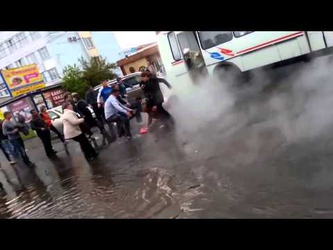 Сообщается, что водитель маршрутного автобуса увидел в центре дороги фонтан горячей воды и решил его объехать по другому размытому водой участку. Однако этот спасительный маневр водителю не удался: маршрутка провалилась передними колесами в яму, автобус окатило кипятком. Как рассказали очевидцы, кипятком в автобусе выбило стекла. Горячая вода залила улицу Вавилова. Пассажиры маршрутки выпрыгивали из автобуса, заливаемого горячей водой, прямо в кипяток. Некоторые из них падали в горячую воду.