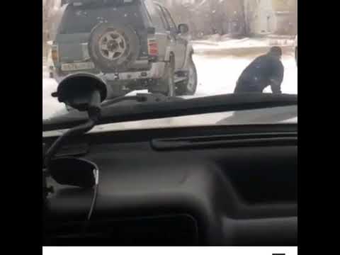 На кадрах видно, как мужчина на костылях обращается к людям в полицейской форме, но они отталкивают его и тот падает. Полицейские сели в машину, после чего потерпевший ударил по автомобилю костылем. Из машины вышли люди в форме и начали кричать на лежащего мужчину.