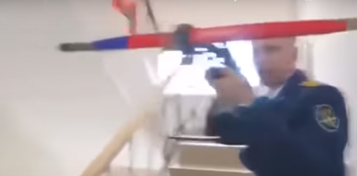 В другом кадре сотрудник ведомства стреляет из арбалета в яблоко, поставленное на голову арестанта. «Если проникнет мобильный, мы отработаем сильно, выясним быстро причину. Оперативник ГУФСИНа! Если стрела с арбалета бегает, словно ракета, нет в лагерях героина», – поют силовики.