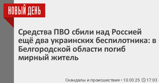 В Белгородской области одна из многочисленных атак ВСУ привела к гибели мирного жителя. Как сообщил глава региона Вячеслав Гладков, в городе Шебекино погиб мирный житель в результате сброса взрывного устройства с беспилотника. «Мужчина скончался от полученных травм до приезда бригады скорой медицинской помощи», – отметил он в своем телеграм-канале.