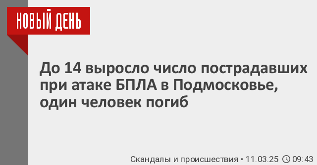Число пострадавших в результате атаки беспилотников ВСУ в Подмосковье увеличилось до 14. Об этом информирует губернатор региона Андрей Воробьев в своем телеграм-канале. Ранее он сообщал об одном погибшем и трех пострадавших.