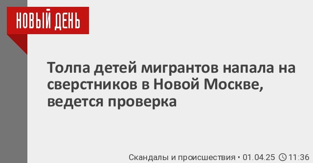 По данным СКР, в соцсетях разошлось сообщение о том, что толпа несовершеннолетних приезжих напала на сверстников в Новой Москве. Конфликт возник из-за девочки, за которую заступились местные подростки.