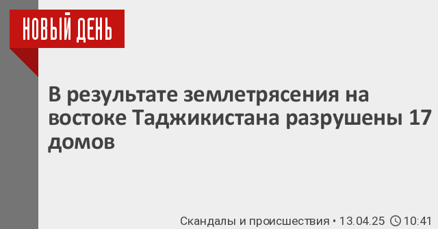 По предварительным данным, из-за землетрясения на востоке Таджикистане частично разрушены 17 жилых домов и одна школа. Об этом сообщил Центр управления кризисными ситуациями Комитета по ЧС и гражданской обороне при правительстве республики.