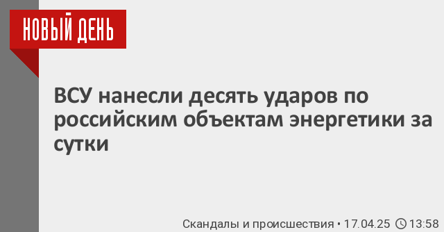 Киевский режим продолжает атаковать объекты энергетики на территории России. За последние сутки было нанесено 10 ударов, которые привели к перебоям в электроснабжении. Об этом сообщает Минобороны РФ.