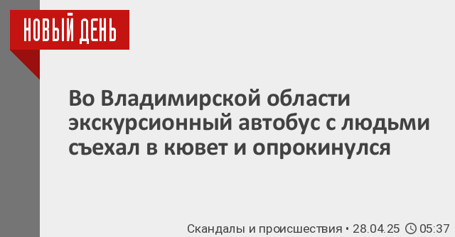 Во Владимирской области произошло крупное ДТП: экскурсионный автобус съехал в кювет и опрокинулся. По предварительным данным региональной ГАИ, 35 человек, находившихся в салоне, обратились за медпомощью.