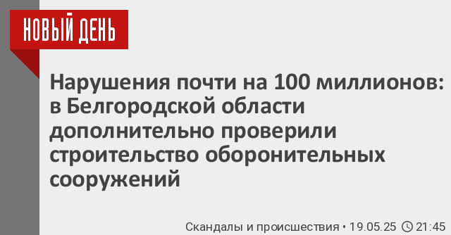 Губернатор Белгородской области сообщил о получении результатов дополнительной проверки строительства оборонительных сооружений в регионе. По его словам, выявлены нарушения на 109 млн рублей.