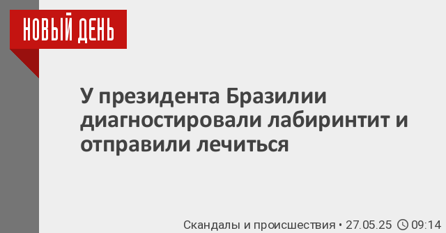 Президент Бразилии Луис Инасиу Лула да Силва страдает лабиринтитом – это инфекция внутреннего уха. Ему предписан покой, сообщает пресс-служба правительства страны.