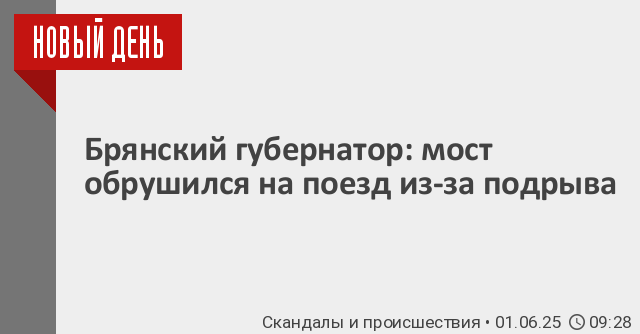 Губернатор Брянской области Александр Богомаз заявил, что обрушившийся автомобильный мост был подорван во время движения пассажирского поезда.