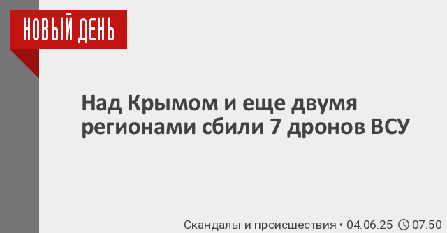 По его информации, три дрона нейтрализовано над территорией Крыма, еще два БПЛА перехвачено над Курской областью и один – над Белгородской областью.