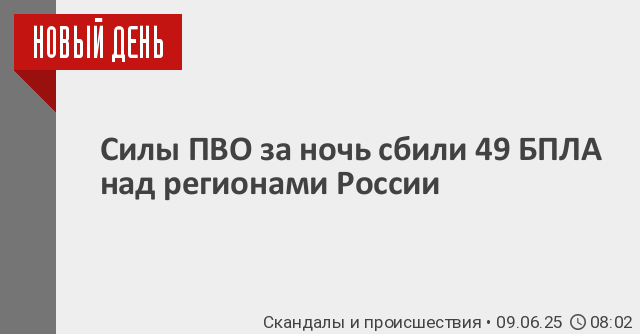 Средства противоздушной обороны за ночь уничтожили 49 украинских беспитников самолетного типа над семью российскими регионами. Об этом сообщает Минобороны РФ.