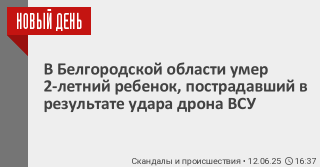 В Белгородской области скончался ребёнок, пострадавший в результате вражеской атаки беспилотника в посёлке Борисовка. Об этом сообщил глава региона Вячеслав Гладков.