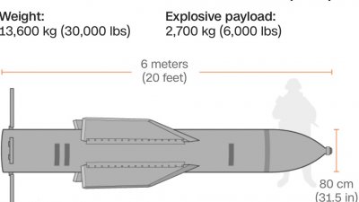 Бомба GBU-57A/B Massive Ordnance Penetrator (MOP), известная как «Bunker Buster», представляет собой 30-фунтовую бомбу весом и весом 6 000 фунтов взрывчатки.