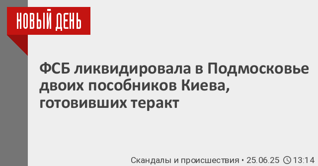 Как отметили в ФСБ, вблизи одного из садоводческих некоммерческих товариществ в Московской области были обнаружены двое граждан России, «осуществлявших изъятие из схрона самодельного взрывного устройства, которое планировалось использовать для совершения диверсионно-террористического акта в отношении одного из военнослужащих в столичном регионе». При задержании они оказали вооруженное сопротивление и ответным огнем были «нейтрализованы».