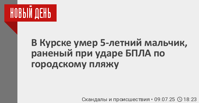В Курске умер 5-летний мальчик, раненый при ударе украинского беспилотника по городскому пляжу. Об этом сообщил врио губернатора Курской области Александр Хинштейн.