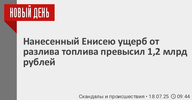 Ущерб, нанесенный реке Енисей, оценен в 1,2 млрд. рублей. Теперь в течение 30 дней организация обязана возместить данную сумму.