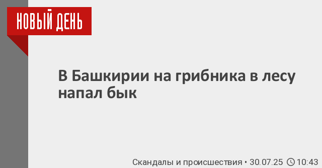 В Башкирии грибника в лесу ранил бык. Как сообщает госкомитет республики по ЧС, инцидент произошел в районе деревни Шигаевка Белокатайского района. Оттуда поступило сообщение о том, что местный житель 1943 года рождения пошел собирать грибы и душицу и домой не вернулся.