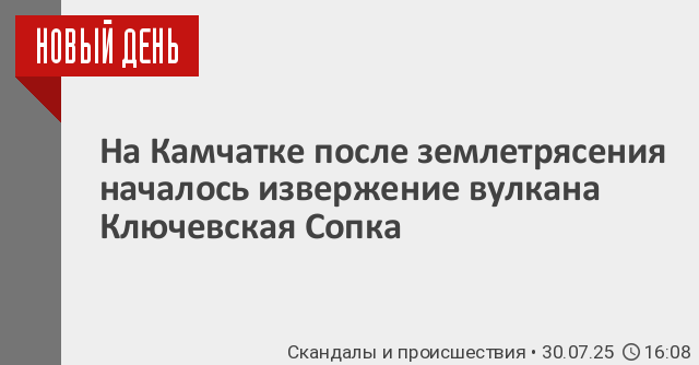На Камчатке произошло извержение вулкана Ключевская Сопка после мощного землетрясения, магнитуда которого, по уточненным данным, составила 8,8. Об этом сообщается в телеграм-канале Камчатского филиала ФГБУН ФИЦ «Единая геофизическая служба Российской академии наук».