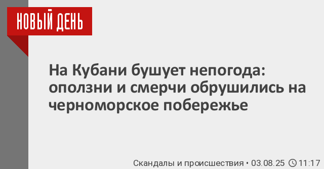 В Краснодарском крае жаркая погода резко сменилась ненастьем. Из-за залповых ливней сходят оползни и блокируют дороги, а смерчи обрушились на пляжи, где до сих пор находятся отдыхающие.