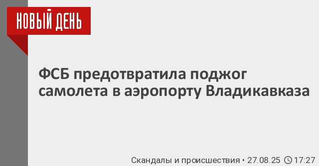 «УФСБ России по РСО-Алания пресечена противоправная деятельность 25-летнего гражданина РФ, планировавшего совершить террористический акт на территории международного аэропорта Владикавказ путем поджога воздушного судна», – говорится в сообщении республиканского управления спецлужбы, которое цитирует ТАСС.